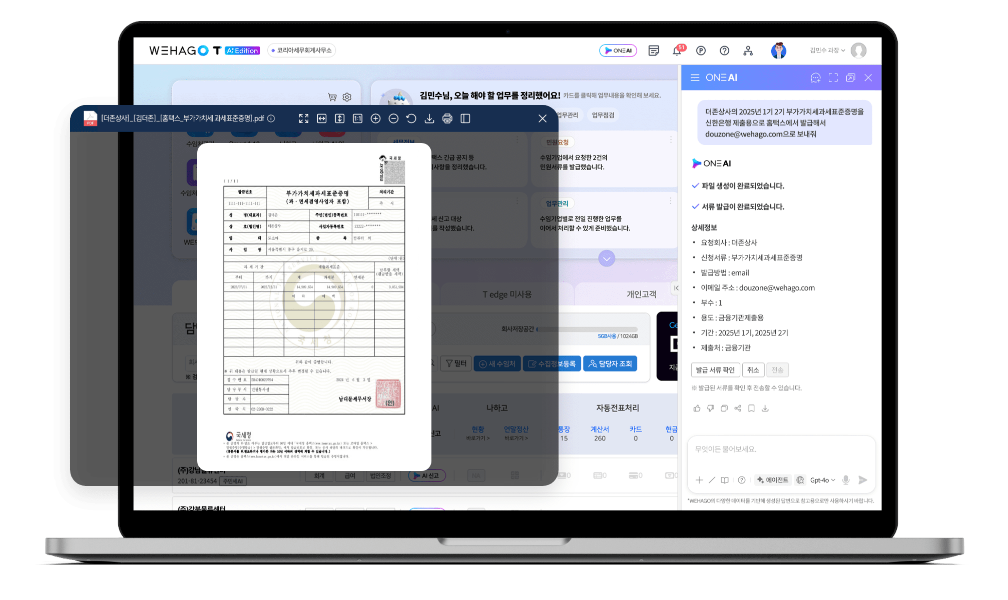 발급된 서류를 확인한 뒤 수임기업에게 전송할 수 있어요.